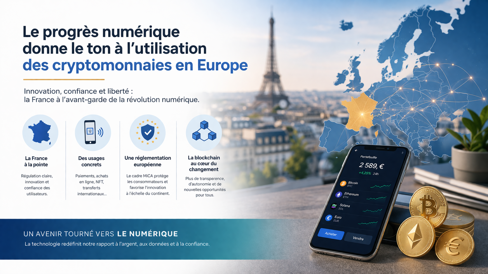 La transformation numérique s’accélère à grande vitesse en Europe. Des paiements sans contact aux services basés sur la blockchain, la technologie redéfinit la manière dont les citoyens interagissent avec l’argent, les données et la confiance. La France joue un rôle central dans cette évolution. De plus en plus de Français s’intéressent aux cryptomonnaies, non seulement comme moyen d’investissement, mais aussi comme composante de leur identité numérique.