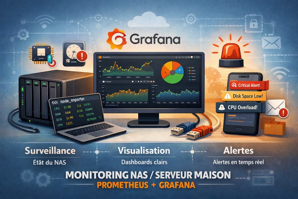 Installer et gérer son propre monitoring à la maison — pour un NAS, un serveur domestique, quelques VM ou un mini-lab — c’est un excellent moyen d’apprendre l’observabilité tout en gardant le contrôle des données. Dans cet article je te présente 7 solutions pour 2026, quand les choix sont pertinents je montre rapidement pour quel usage chaque outil est pertinent et comment l’installer en gros (astuces pratiques, snippets). Je me concentre sur des stacks “Grafana-like” (tableaux, séries temporelles) avec alerting natif ou via intégration — et je donne des pièges à éviter pour un usage maison.